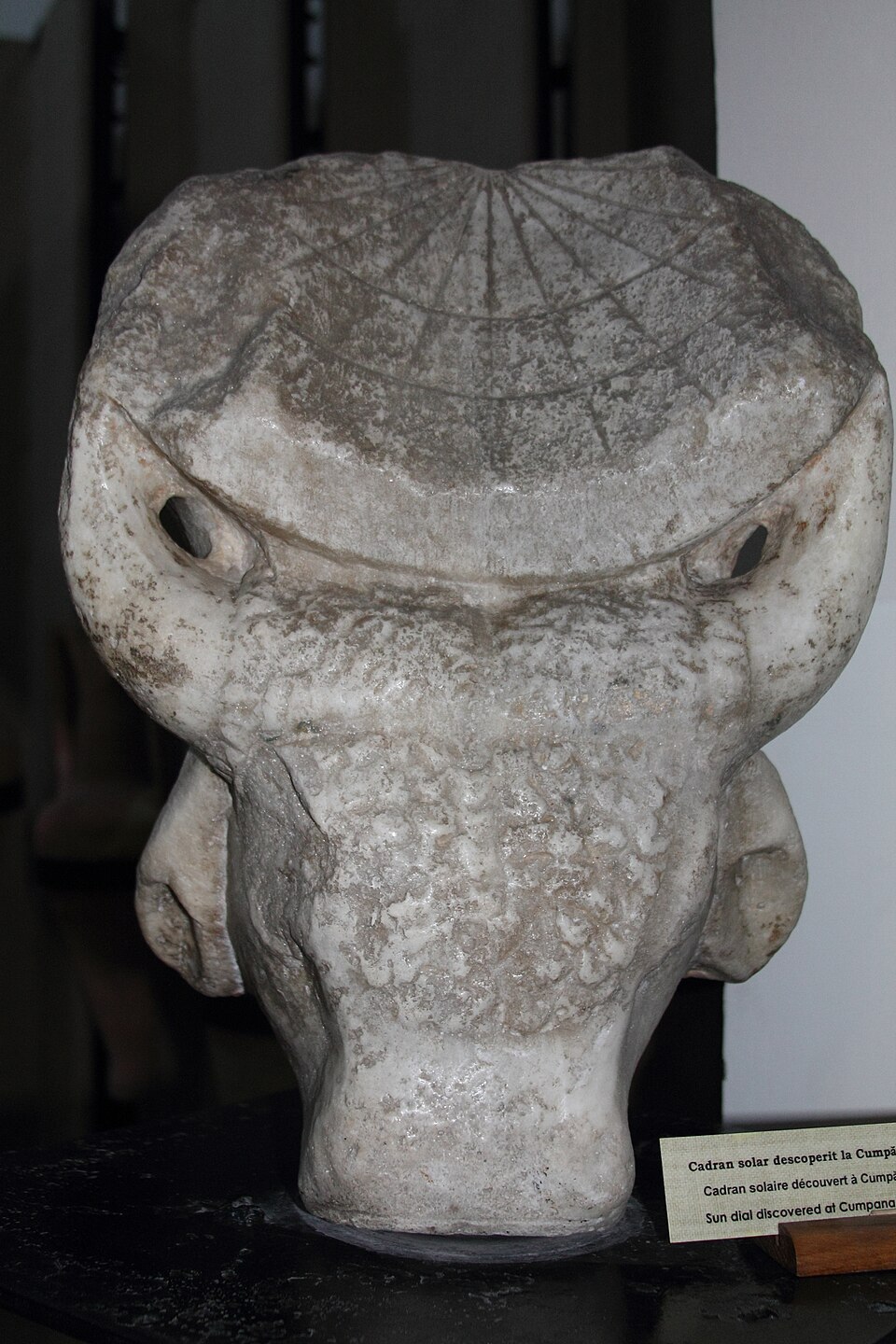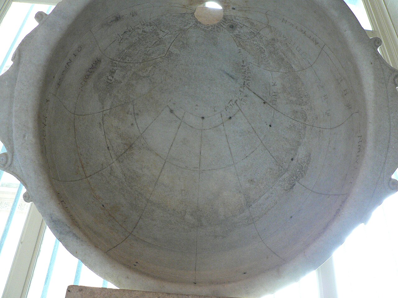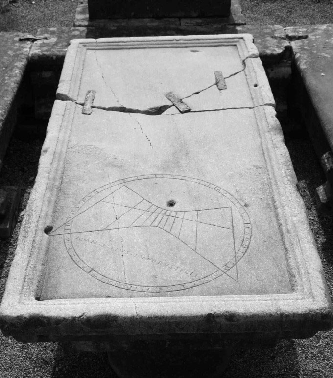 , первым по порядку и приписывает его изобретение вавилонянину Бероссу; тут я вижу анахронизм. Вероятно, Беросс познакомил греков с часами-чашей, самыми простыми солнечными часами полусферического типа, а гемициклы — уже следующий шаг в развитии греческой гномики. Вероятно, они вошли в практику в середине III в. до н.э. и затем использовались повсеместно. Античных солнечных часов-гемициклов археологами найдено очень много. На фотографии в заставке раздела — подобные часы из запасников Археологического музея Стамбула, я наткнулся на них случайно.
