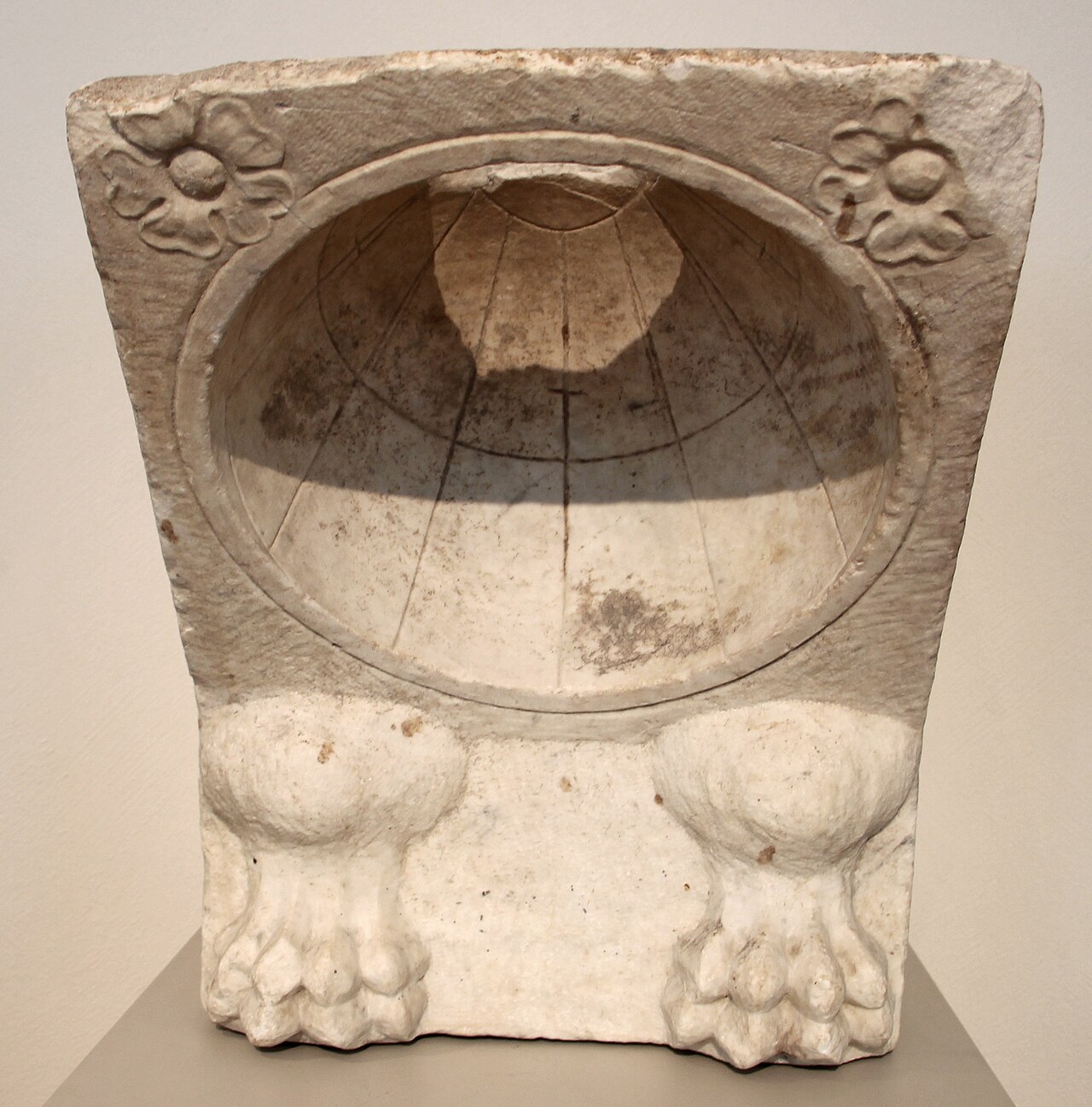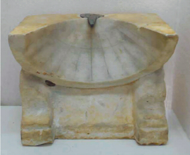 Вероятно, полусферических часов классического вида было изготовлено немного, они сменились другими моделями, возможно потому, что пользоваться ими не очень удобно: нужно подойти вплотную, чтобы заглянуть в чашу и увидеть тень. Мне удалось найти фотографию единственного экземпляра, относящегося к I в. н.э.