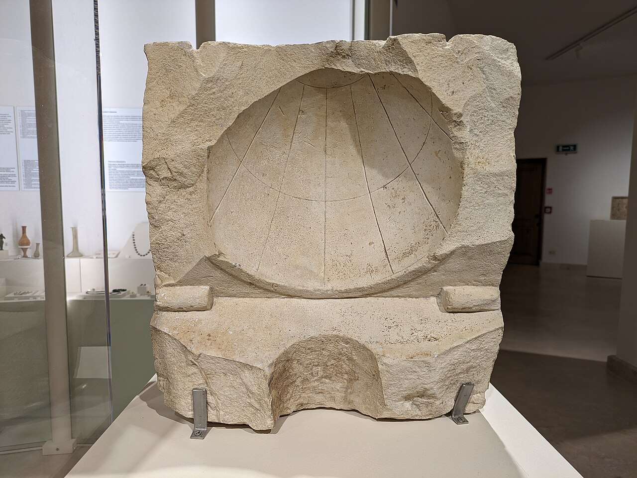 Как ни странно, таких самых простых часов экваториального типа археологи практически не находят. Мне удалось обнаружить уникальное упоминание таких часов, найденных в 2020 году в Херсонесе. На обеих сторонах фрагмента известняковой плитки тонкими гравированными линиями прочерчены радиальные и концентрические линии