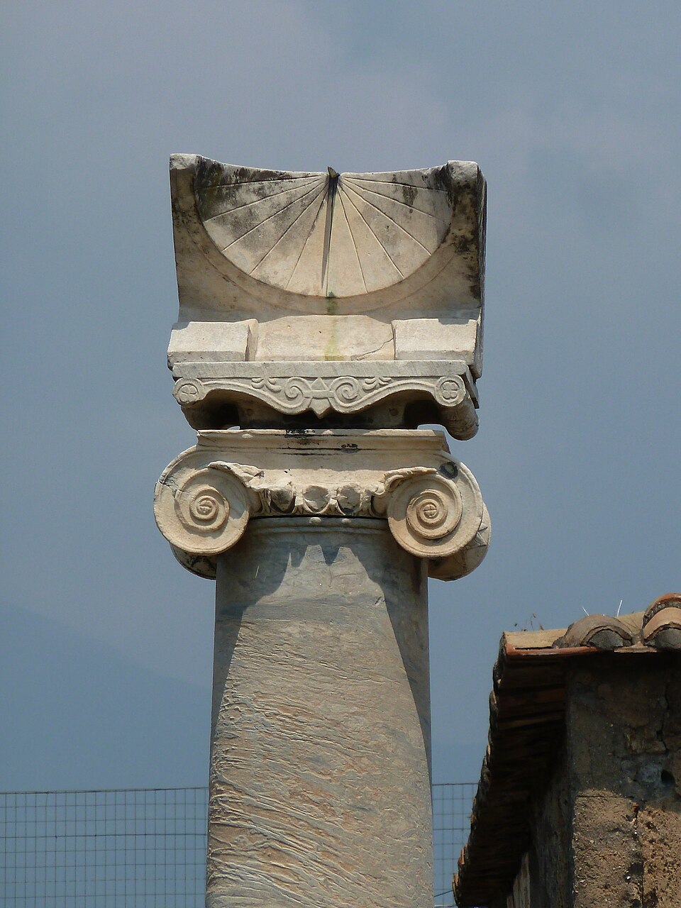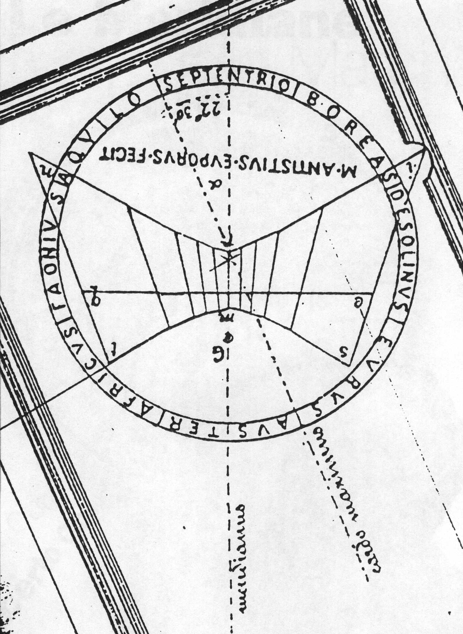 Чуть более развернуто пишет античный архитектор Витрувий. В девятой книге работы «Десять книг об архитектуре» восьмую главу он посвящает солнечным и водяным часам, но на солнечные выделяет только один абзац, в которых перечисляет их типы и приводит имена изобретателей.
