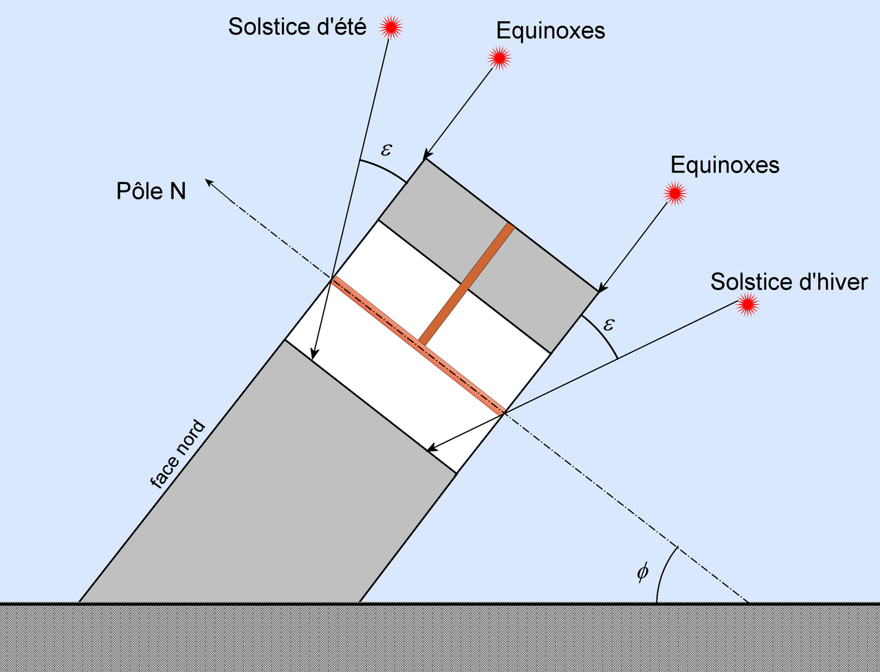 Термин, который использует Витрувий προς παν κλίμα означает «для всех климатов», то есть применимые в любых широтах. Можно представить разные конструкции всеширотных часов, но исследователи почему-то единодушно считают, что античный архитектор имел здесь в виду именно часы, описанные ниже: вертикальные солнечные с линейным наклонным кадраном.
