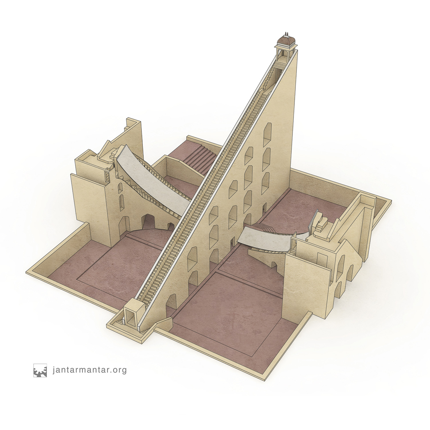 Принцип полярно-направленного гномона совместно с цилиндрическим кадраном можно воплощать самыми разными способами. В VII в. в Дели астроном и математик Брамагупта спроектировал солнечные часы такого типа; гномон их представлял собой огромную «лестницу в небо», которая отбрасывала тень на цилиндрические крылья. В 1734 году конструкция была воспроизведена в обсерватории Джантар-Мантар в индийском городе Джайпуре. Наконец, модель этих часов в масштабе 1:10 была установлена в Московском планетарии. Поскольку широта Москвы (56°) больше широты Джайпура (26°) лестница соответственно круче.