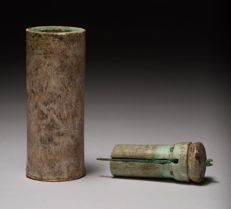 Солнечные часы-колчан имеют цилиндрическую форму и известны как вертикальные цилиндрические часы (не путать с цилиндрическим скафисом!). В англоязычных странах их называют пастушьими, shepherd's dial. Да, изначально это просто пастуший посох с горизонтальной ручкой, такие Г-образные часы: тень от ручки-гномона падает на трость и по длине тени определяется время. В усовершенствованном варианте цилиндр больше диаметром и на нём нанесены часовые линии, верхняя часть цилиндра с гномоном вращается и устанавливается в соответствии с датой. Для точности установки часы могли подвешиваться или имели отвес, гномон мог сниматься и храниться в полом корпусе, могли использоваться два гномона — зимний и летний — в общем, варианты разные.