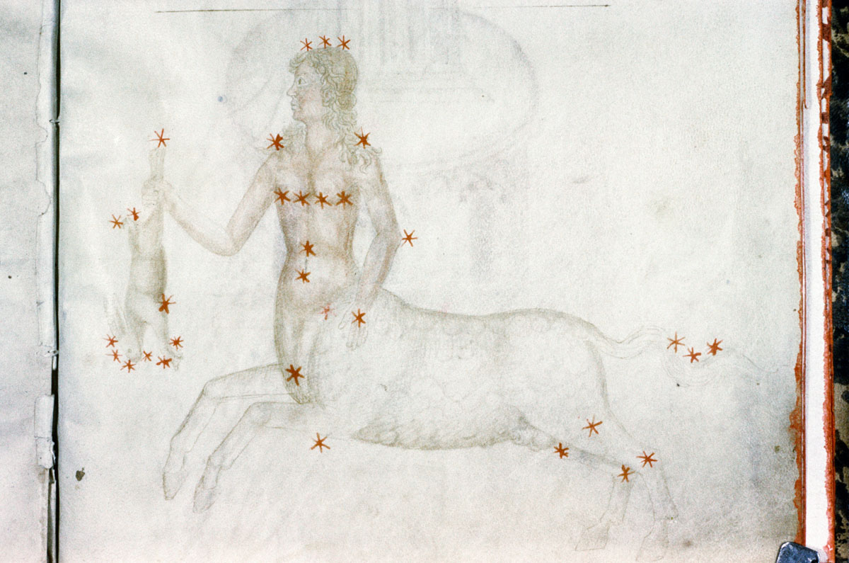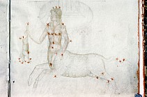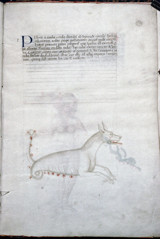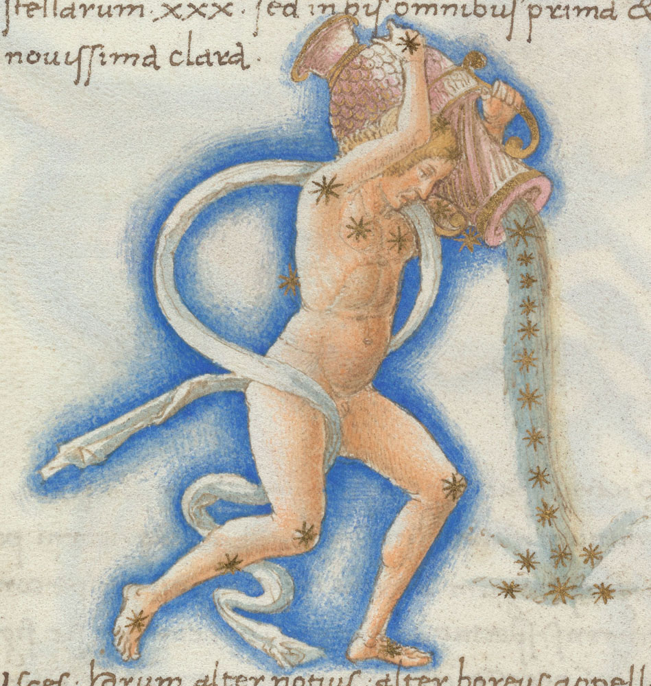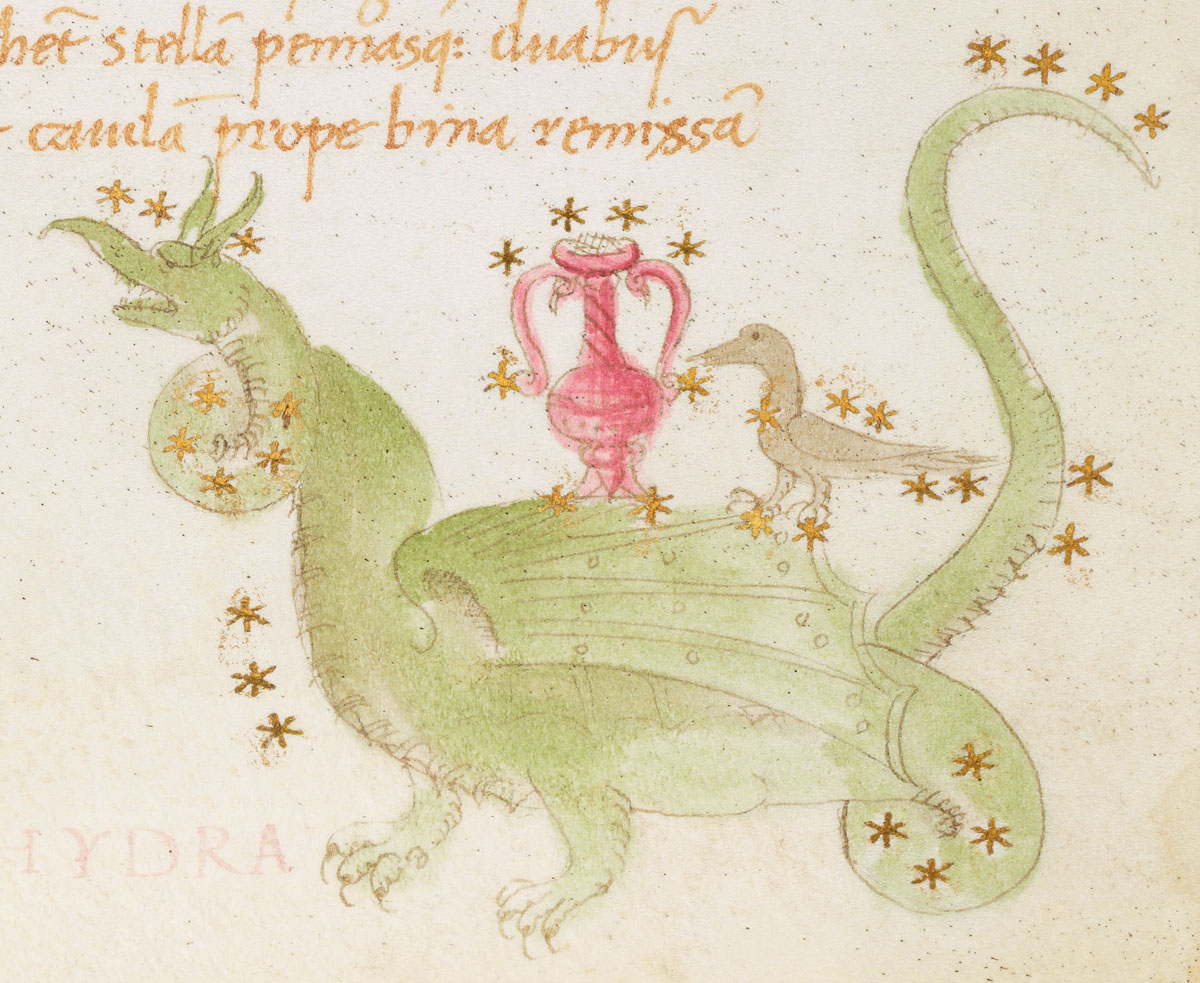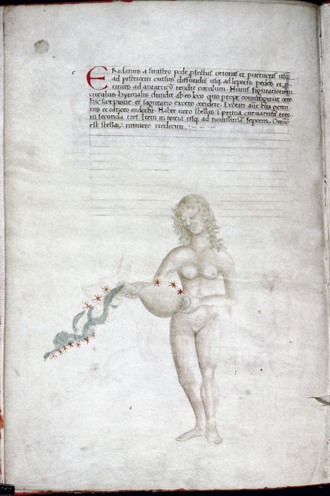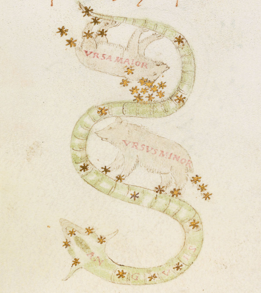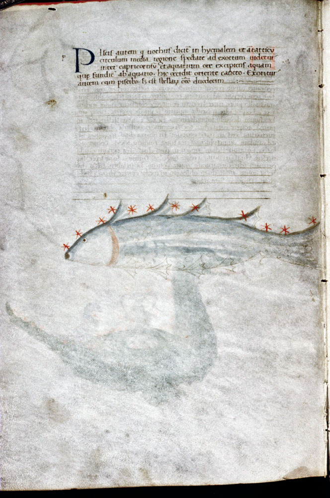 «Аратея», «Явления» Арата Солийского в переводе Цицерона, IX в. (820-840, 830?) Из манускрипта Harley MS 647 («Харлеанский Арат»), коллекции астрологических и астрономических текстов конца IX века - XI в; Франция, Реймс (?). Каллиграммы созвездий — соответствующие описания из «Астрономии» Гигина.