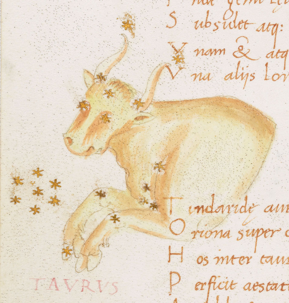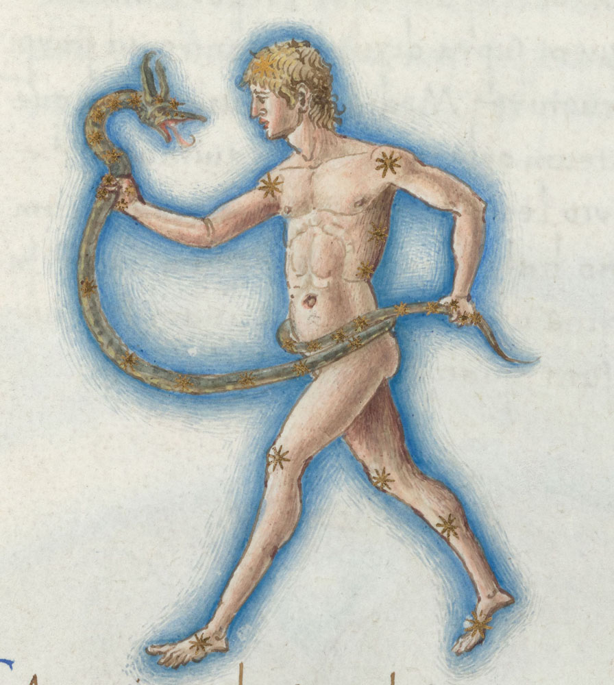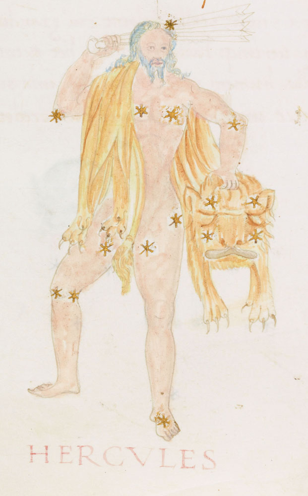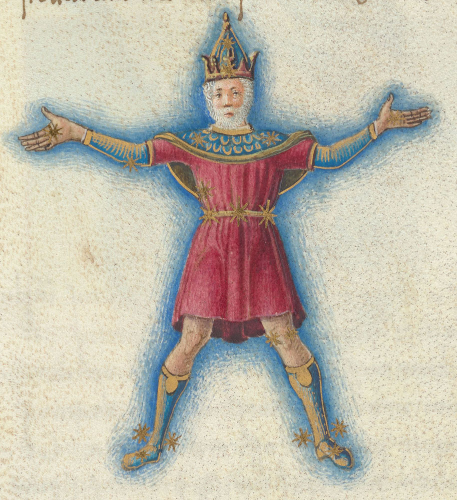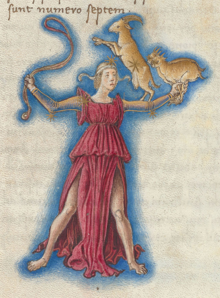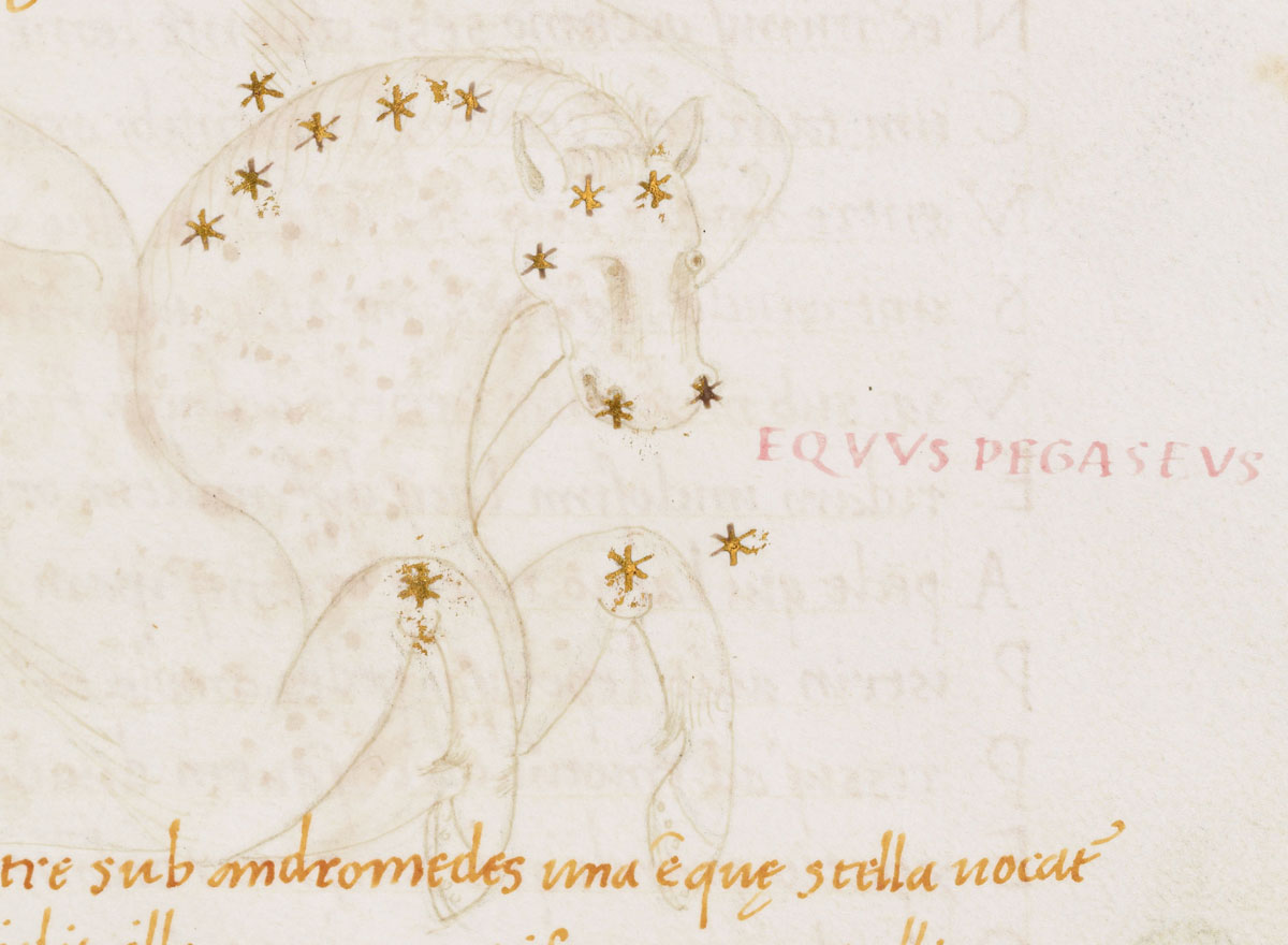 «Аратея», «Явления» Арата Солийского в переводе Цицерона, IX в. (820-840, 830?) Из манускрипта Harley MS 647 («Харлеанский Арат»), коллекции астрологических и астрономических текстов конца IX века - XI в; Франция, Реймс (?). Каллиграммы созвездий — соответствующие описания из «Астрономии» Гигина.