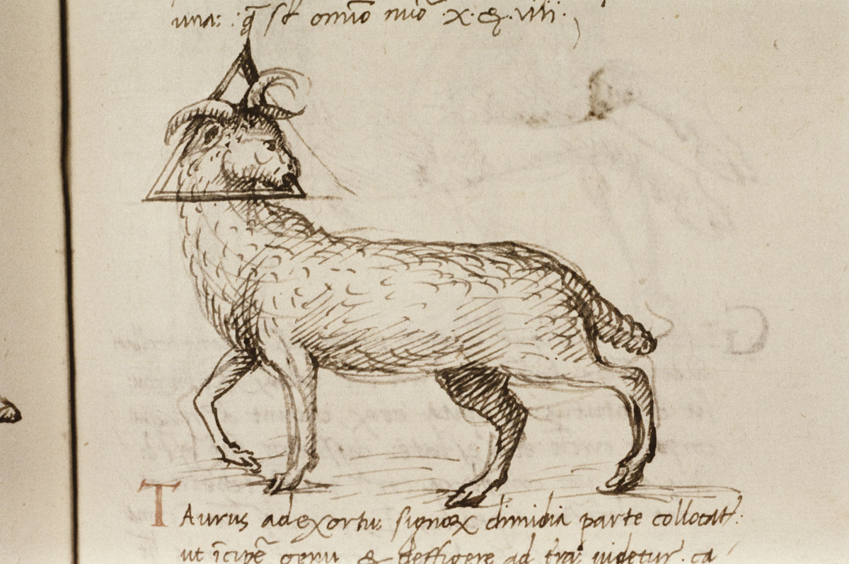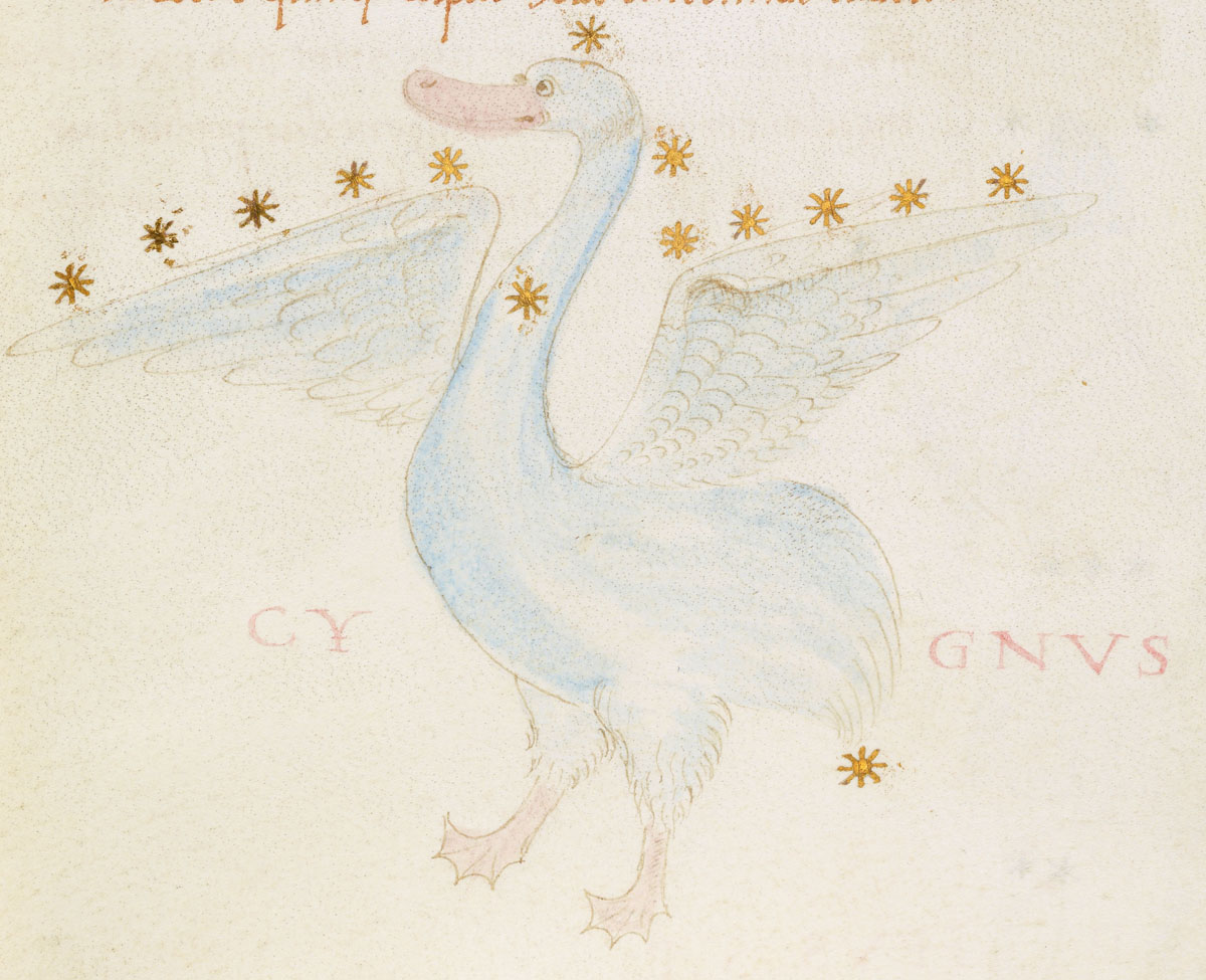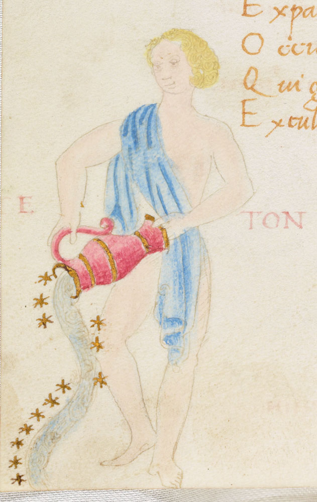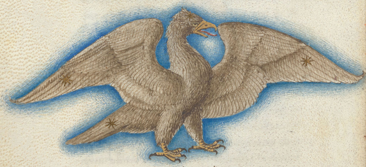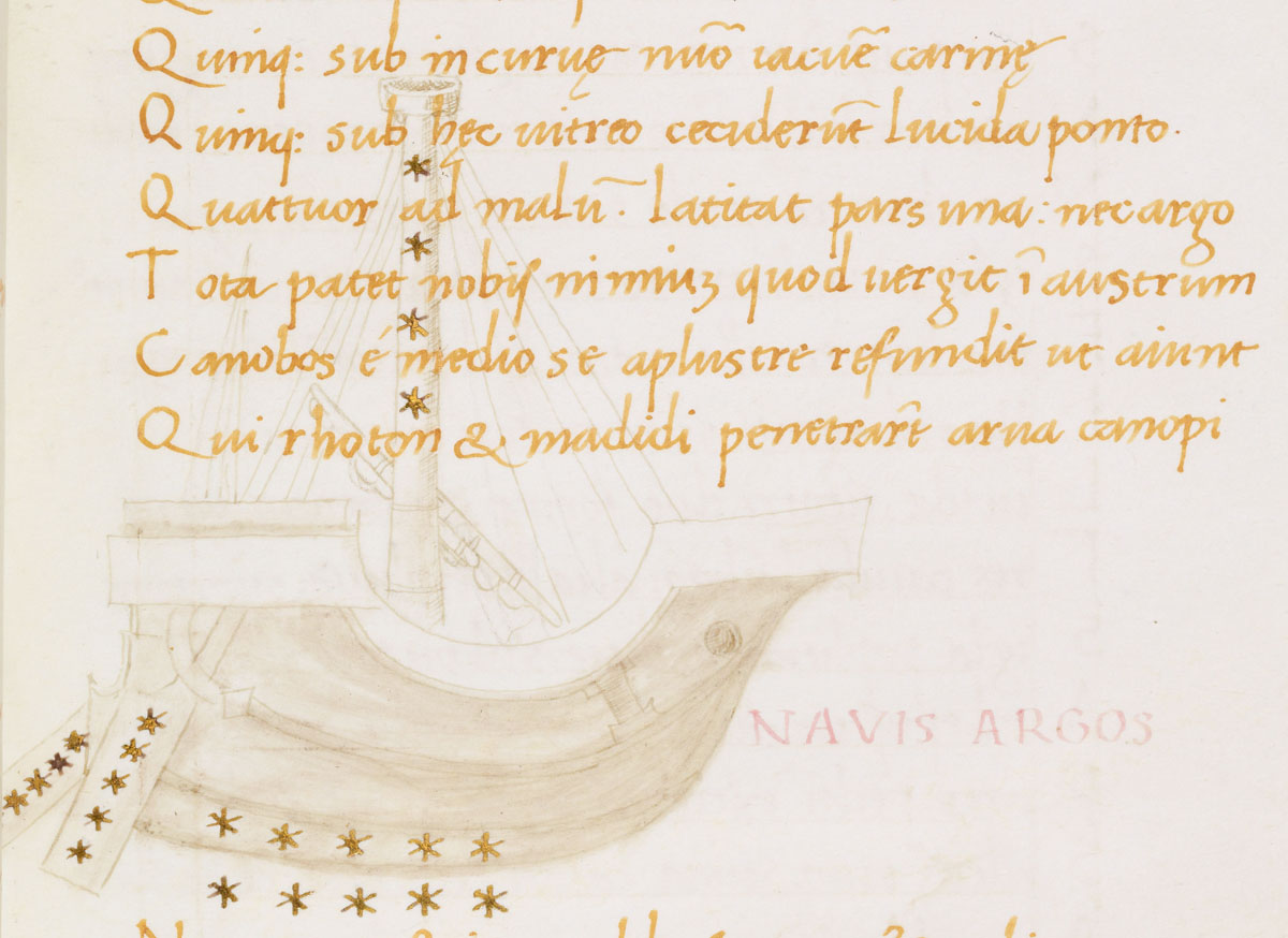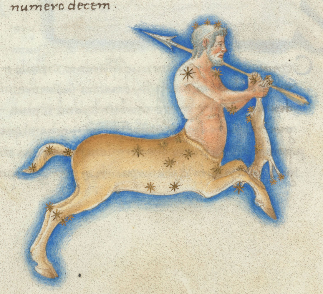 «Аратея», «Явления» Арата Солийского в переводе Цицерона, IX в. (820-840, 830?) Из манускрипта Harley MS 647 («Харлеанский Арат»), коллекции астрологических и астрономических текстов конца IX века - XI в; Франция, Реймс (?). Каллиграммы созвездий — соответствующие описания из «Астрономии» Гигина.
