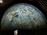 Интересна проекция: казалось бы, в вершине купольной росписи небосвода должен размещаться или полюс Мира, или эклиптики, ну, или, на худой конец, какая-то циркумполярная область с учётом широты: ничего подобного! Вдоль длинной оси купола проходит экватор, северный полюс Мира на середине одной стороны купольного эллипса, южный — на другой, то есть небесная сфера показана «сбоку». Также проведены различные небесные круги: эклиптика с рисками знаков и соответствующими символами, экватор, тропики и — удивительное дело — первый вертикал, большой круг небесный сферы, проходящий через полюса и точки равноденствий. (Вопрос для любителей астрономии: каковы небесные координаты центральной точки купола?)