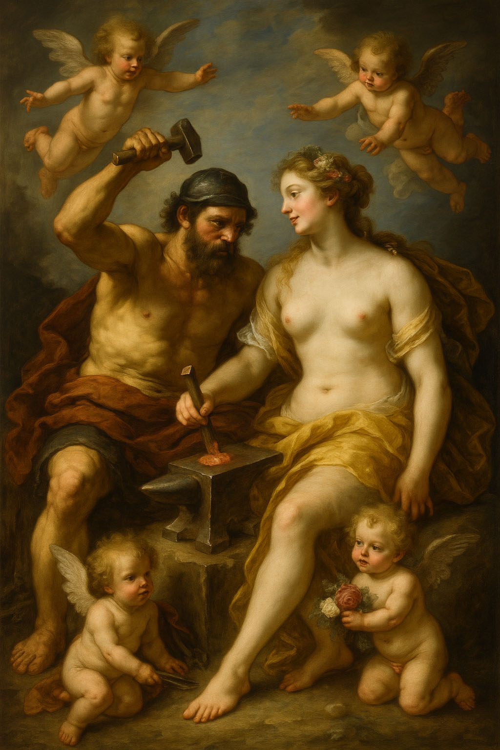 - поймал в металлическую сеть свою жену Афродиту и её полюбовника Ареса в тот самый момент, когда они оскверняли супружеское ложе