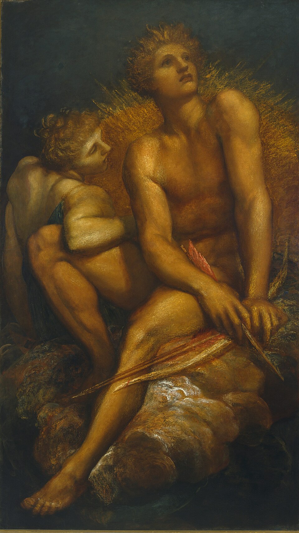 Есть маргинальный миф (первоисточников его я не нашел), который я изложу в своей интерпретации. Когда Кронос решил восстать против власти своего отца Урана, четыре титана отправились в разные концы земли: Гиперион на восток, Криос на юг, Кеос на север и Иапет на запад. Они дождались, когда Уран-небо спустится к Гее-земле для любовного акта, покрыв ее симметрично от края до края, и схватили отца с четырёх сторон. Они удерживали его, пока Кронос вылез из распахнутых к соитию недр Геи, схватил член Урана левой рукой, а правой, вооруженной серпом из адаманта, отсёк его под самый корень!